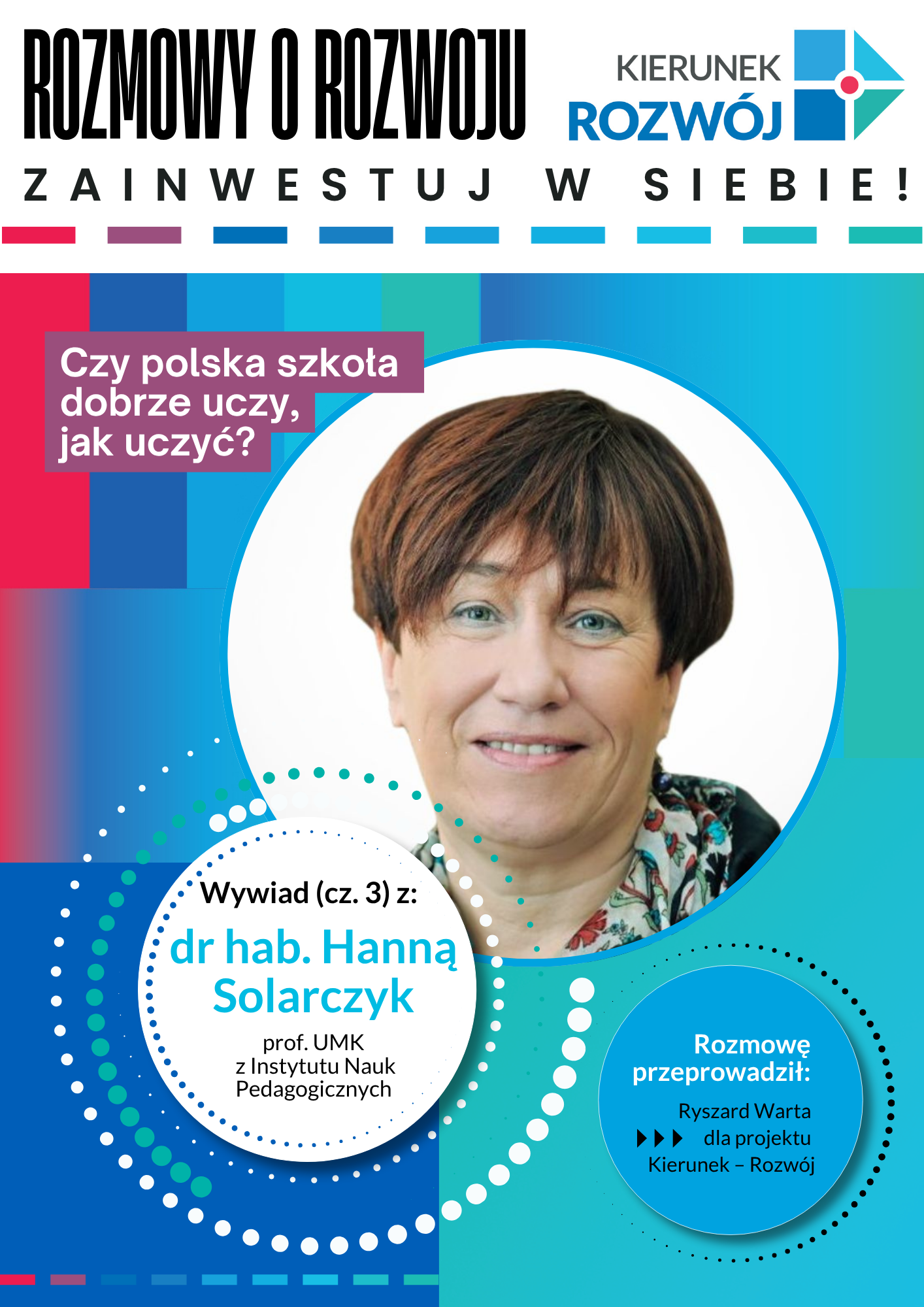 W siódmym wywiadzie z cyklu „Rozmowy o Rozwoju” ponownie gościmy dr hab. Annę Solarczyk – prof. UMK z Instytutu Nauk Pedagogicznych na Wydziale Filozofii i Nauk Społecznych Uniwersytetu Mikołaja Kopernika w Toruniu.