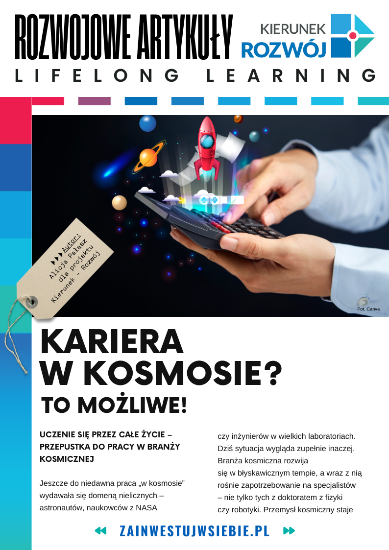 Na początek zapraszamy do lektury tekstu „Kariera w kosmosie? To możliwe!”, którego autorką jest Alicja Pałasz, broker informacji w projekcie Kierunek – Rozwój.
