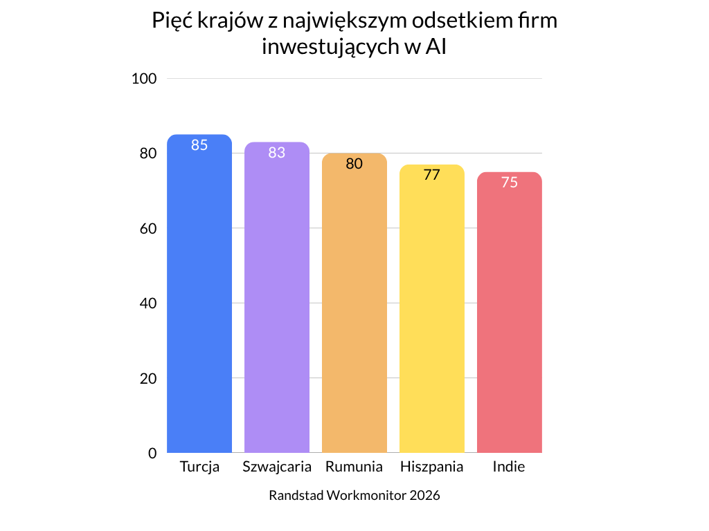 • 63 proc. pracodawców zadeklarowało inwestycje w AI,