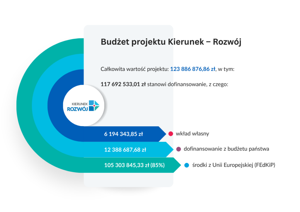 Projekt Kierunek – Rozwój jest współfinansowany ze środków Europejskiego Funduszu Społecznego Plus oraz budżetu państwa, w ramach programu Fundusze Europejskie dla Kujaw i Pomorza na lata 2021-2027 – Priorytet 8 Fundusze europejskie na wsparcie w obszarze rynku pracy, edukacji i włączenia społecznego, Działanie 08.19 Uczenie się dorosłych.